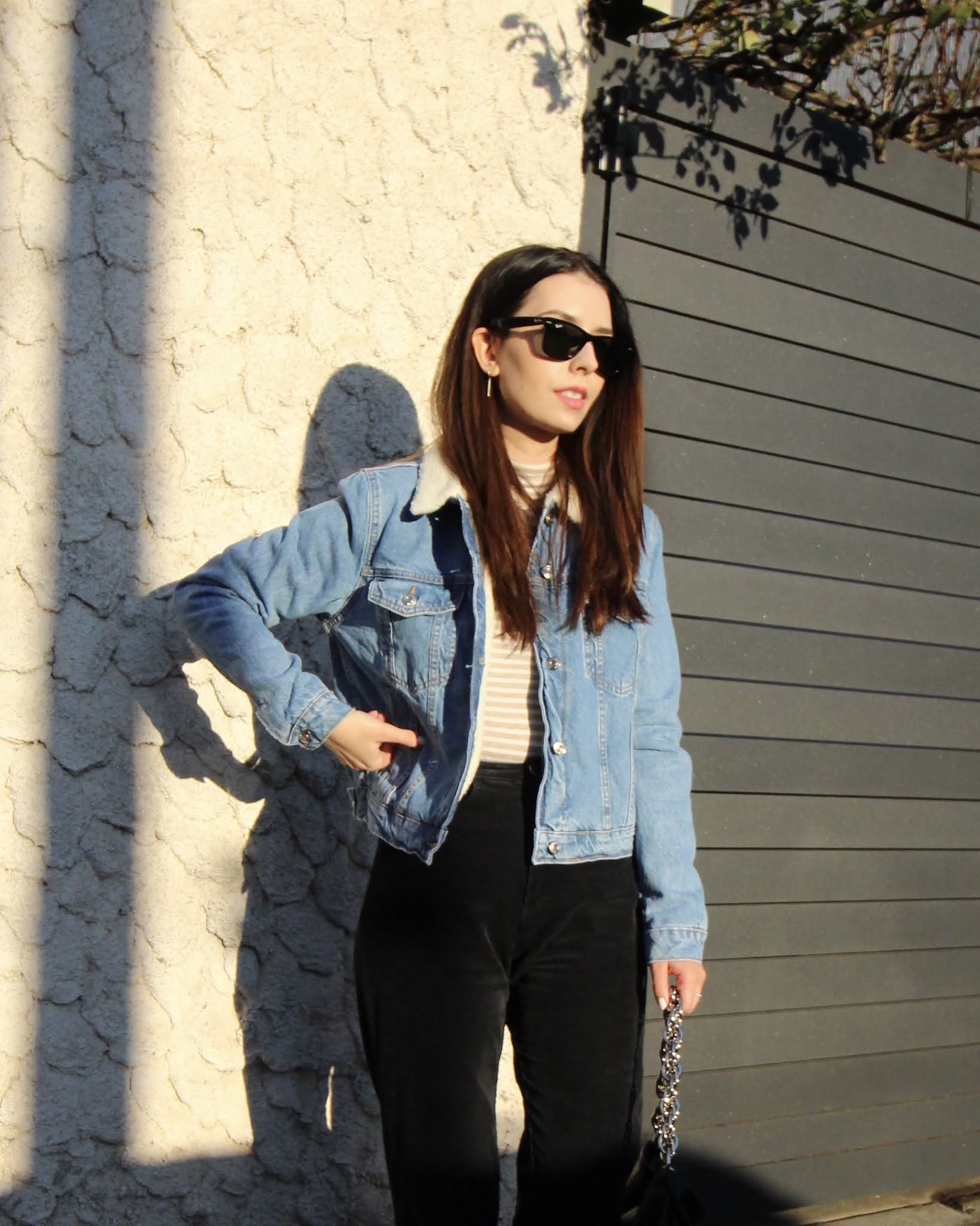 I love wearing denim jackets and they are not really something you'll wear during colder winter months, although you can pull it off during rare warmer winter days. These ''shearling'' denim jackets, on the other hand, can keep you warm and create nice wintry looks unless it's snowing or freezing. I got this one because it looks so pretty with high waisted pants (or jeans if you are doing that denim on denim look) and dresses. If you've watched Gilmore girls you probably remember Lorelai and Rory both had similar jackets. I always wandered what kind of weather they had in Stars Hollow to be able to wear such jackets during the whole winter. 😆